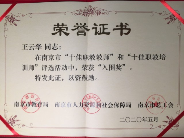 两位同志的获奖意味着我校牢记“技能强国,职教兴邦”的职责使命,在职业教育理论探索、教学授业、技能培训、人才输送、社会服务、文化传承和国际交流等多方面进一步提升了影响力,为推动南京职教事业健康发展和经济社会的进步作出了积极的贡献。