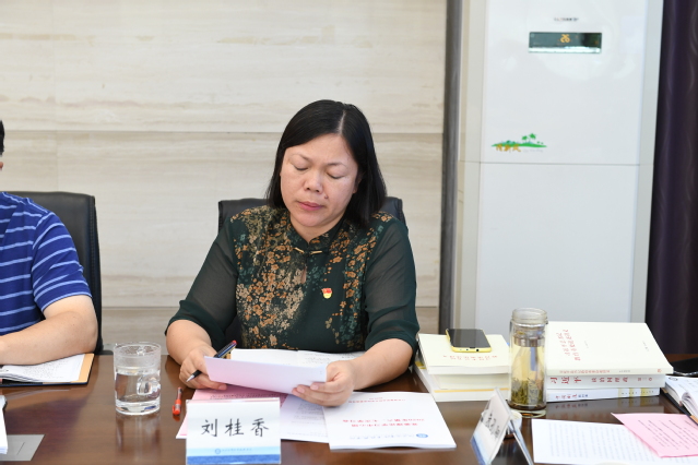 刘桂香从意识形态工作角度,解读了上级相关文件的出台背景,通报了下半年全校思想政治学习所作的相应工作安排及学习要求。她提出,认真贯彻落实系列学习任务,要重视发挥学校思想政治工作委员会的作用,加强思政工作一体化的思考和设计,尽快实现内容组织实施一体化,师生思政工作一体化,校内校外、课内课外思政工作一体化,相关单位部门思政工作一体化以及思想政治工作成效一体化考核。