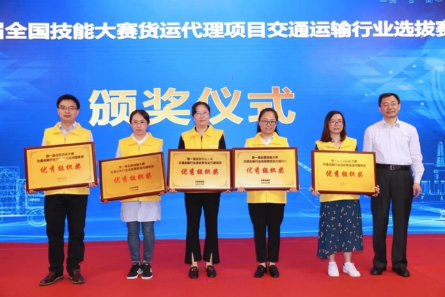 日前,在刚刚结束的第一届全国技能大赛货运代理项目交通运输行业选拔赛中,我校代表队喜获佳绩:报关181304刘铭洲同学获得铜牌,商英181302包骆玲同学获得第七名;教师秦德如获得优秀指导教师奖;学校获得优秀组织奖第一名。