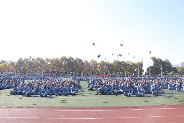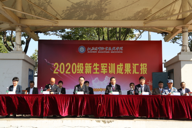 10月23日,为期12天的2020级新生军训顺利结束。当天下午,汇报大会在田径场隆重举行,4000余名新生向学校领导、海军士官学校教官及老师们展示了训练成果。校党委书记刘红明,副校长缪克银,党委委员、组织部部长孙俭,海军士官学校教员金沙等出席大会,相关职能部门负责人、各学院党总支(直属党支部)书记、副书记、新生辅导员和班主任等参加大会。党委人民武装部部长戴军主持大会。