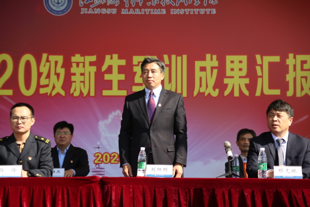 党委书记刘红明发表重要讲话,他代表学校对海军士官学校、士官生和退役学生教官及职能部门和老师们的辛勤付出表示感谢,向取得军训圆满成功的2020级新生表示热烈祝贺。他指出,在近两周的军训中,新生经受住了考验,站军姿、走队列、整内务、学格斗,朝气蓬勃、充满活力,互相影响、共同进步;积极训练,不掉队、不抱怨、不流泪,遵守纪律、服从指挥,风雨无阻、精神可嘉,增强了国防意识,磨练了坚强意志,锻炼了抗挫品质。他特别提到了担任教官的士官生和退役学生,表扬他们临危受命、闻令而动,示范了“帅模样”,抒发了“好声音”,传递了“正能量”。他对本次军训活动组织给予了充分肯定,党委人民武装部、士官学院、学工处、教务处、团委、各二级学院等单位密切配合,体现了较强的协同能力和组训水平。