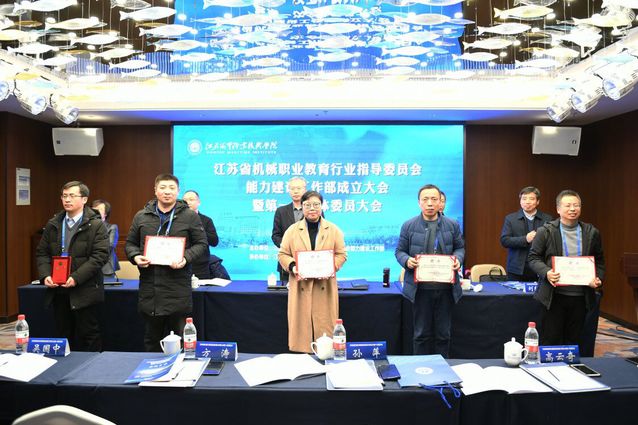 能力建设工作部秘书长、我校轮机电气与智能工程学院院长马洪涛宣读了《江苏省机械职业教育行业指导委员会能力建设工作部委员名单》。各位领导为工作部副主任委员颁发聘书。